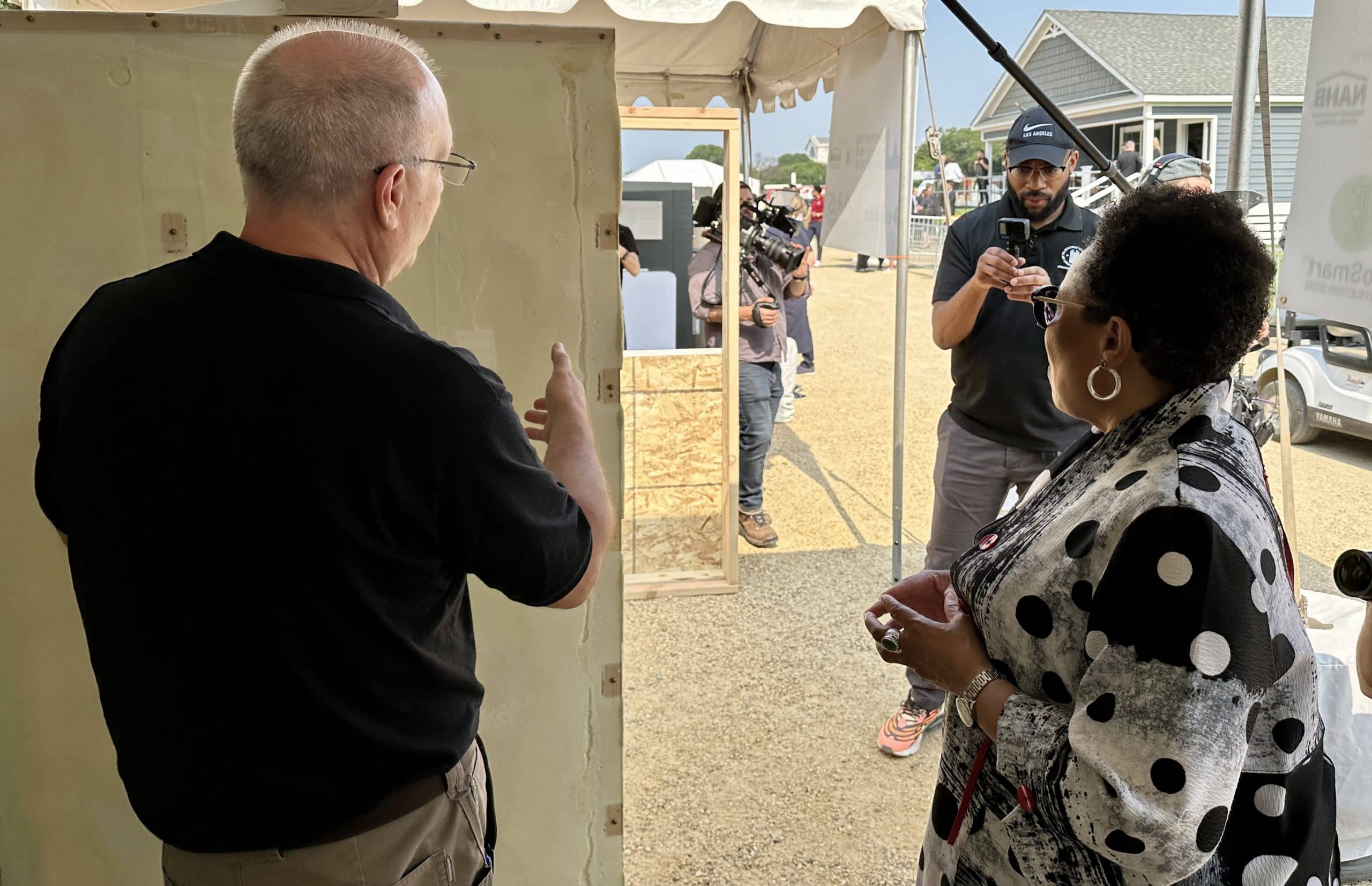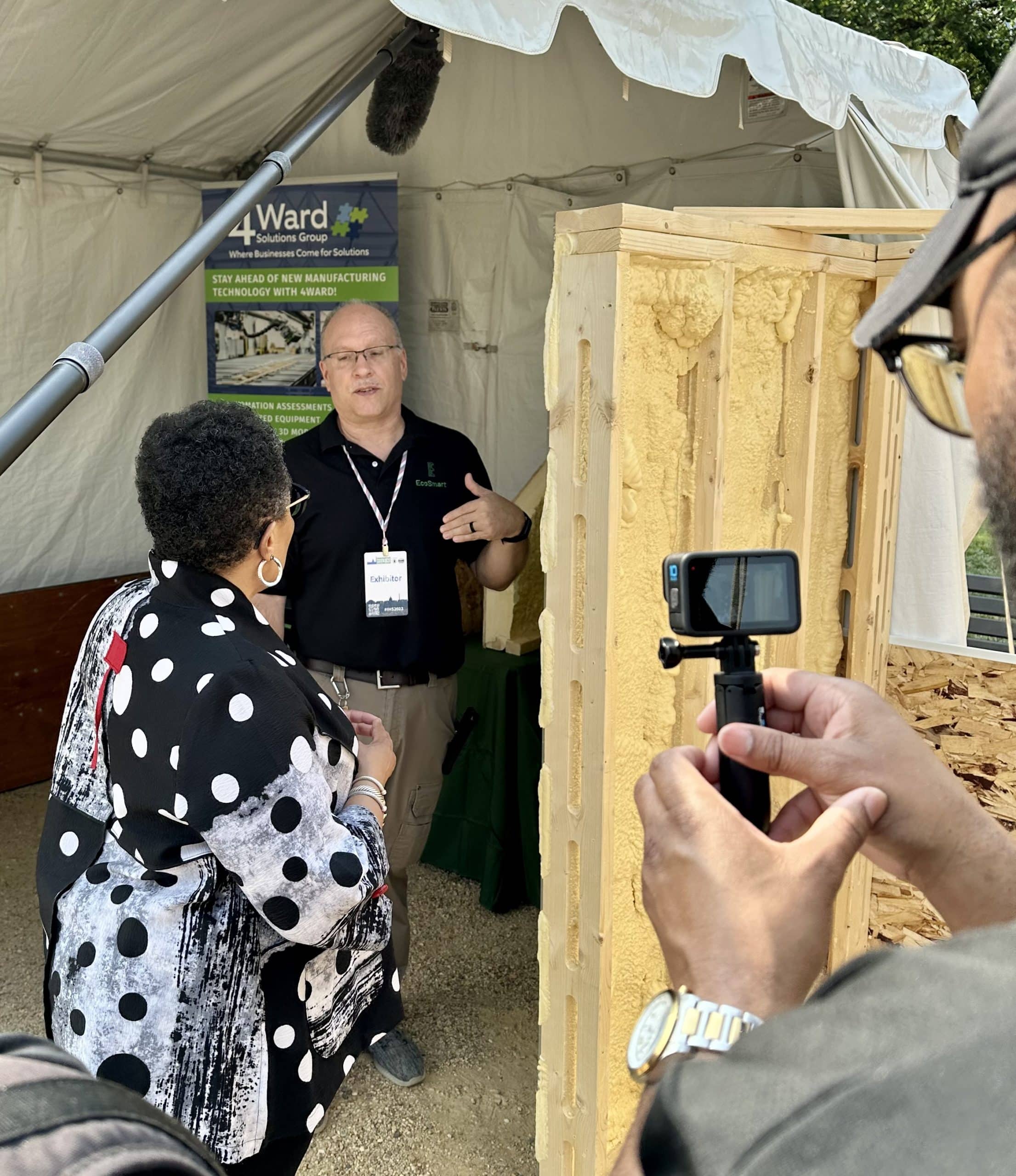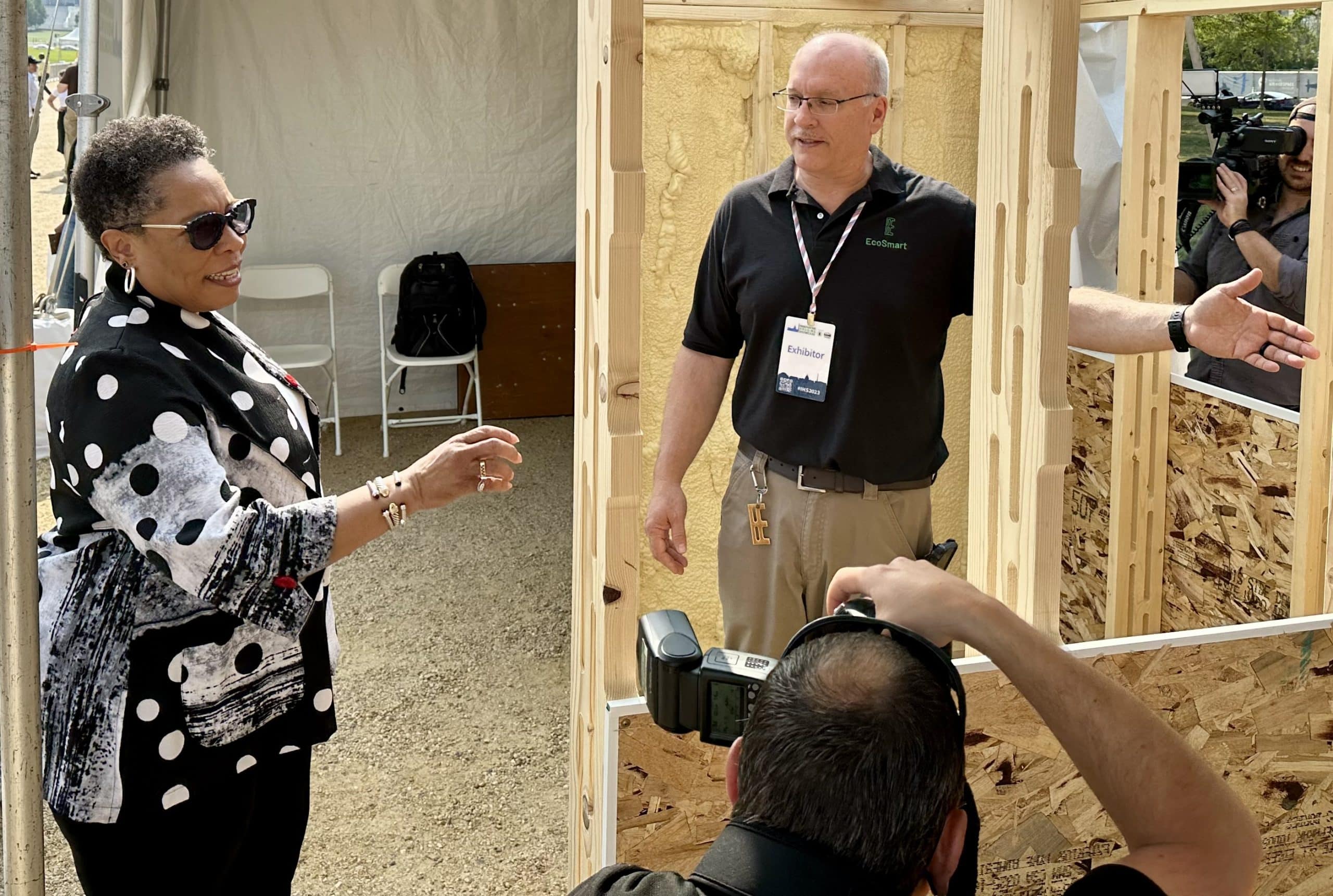 WASHINGTON—U.S. Department of Housing and Urban Development Secretary Marcia Fudge today visited with EcoSmart Stud creator Jon Pues at the department’s Innovative Housing Showcase on the National Mall.