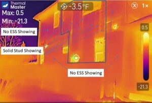 This is the first EcoSmart® Stud home where we have been able to get real-world temperatures that match our computer model temperatures and we can break out the thermal imaging camera. Having our computer model of EcoSmart® Studs verified in the field is rewarding. To be able to compare solid stud framing in the same build was a bonus! Let’s take a look.